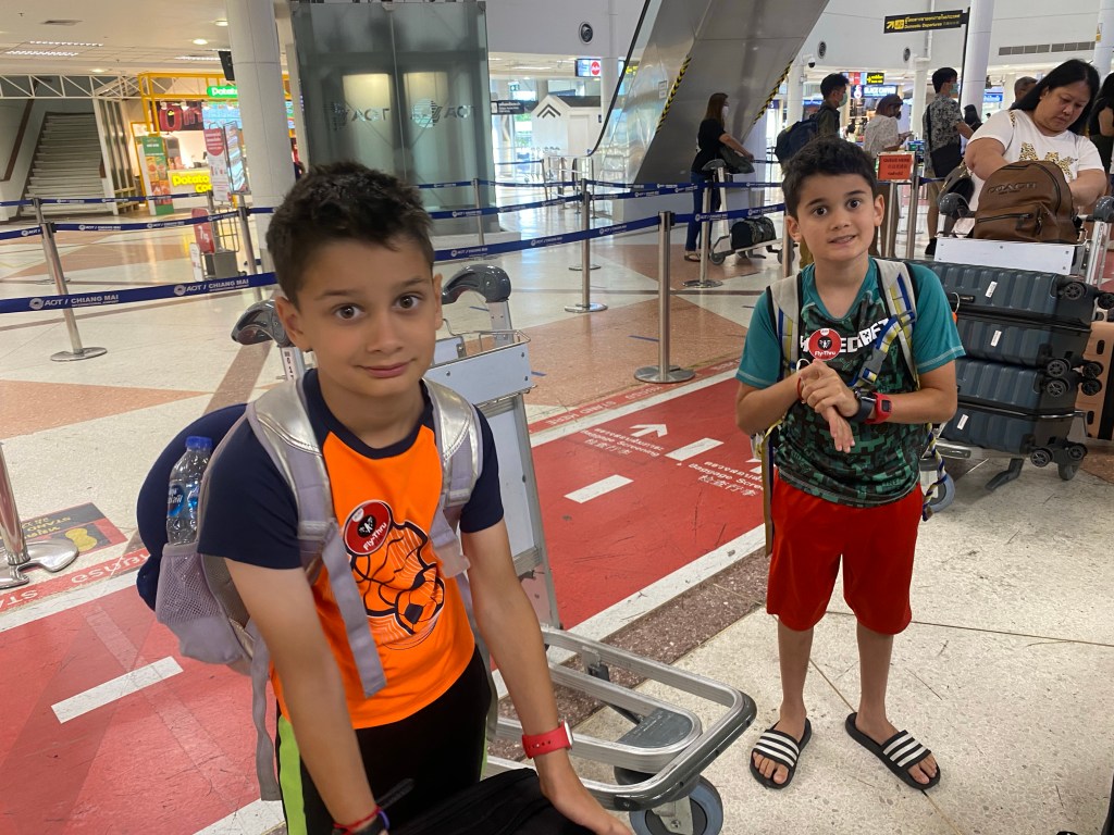 We had an 830am flight today to Bangkok with a 1.75 hour layover and then on to Bali. I was advised to leave at 7, but that felt a little close to comfort for me, so our driver came to pick us up at 615am. Our lovely Airbnb host helped us with luggage, and gave me a hug and wished the boys goodbye.
