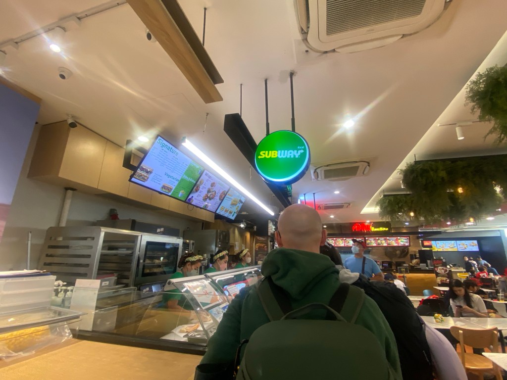 Subway to the rescue. Kids got egg and cheese sandwiches and Mac and cheese sides and I got a veggie deluxe. Amazing how a subway sandwich tastes basically the same thousands of miles from home. I was hoping for some Thai food, but there were limited options, plus we only had time to get into line for one vendor before we boarded.